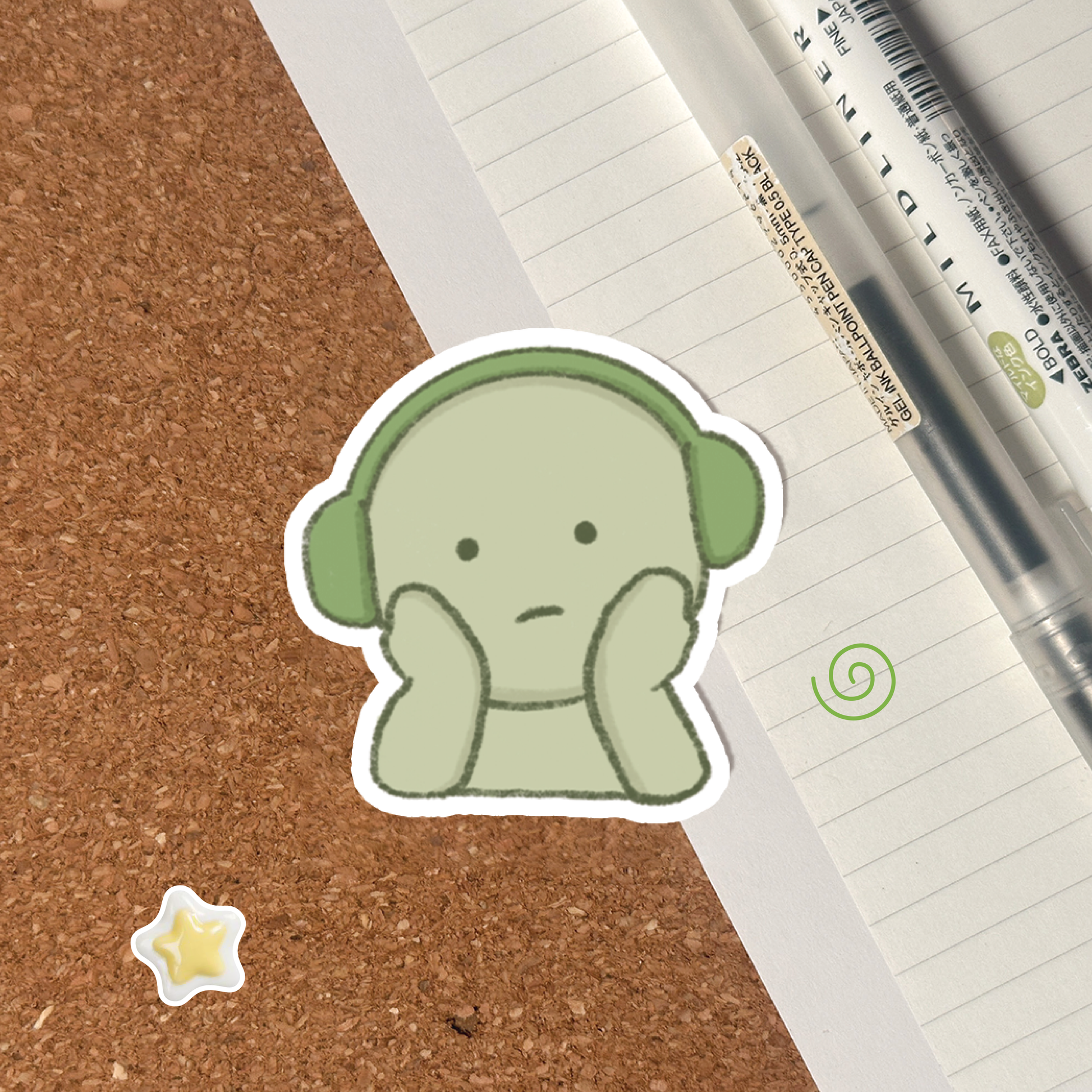 Smiski-inspired headphone sticker perfect for journaling, planners, water bottles, headphones, laptops, phones and more!